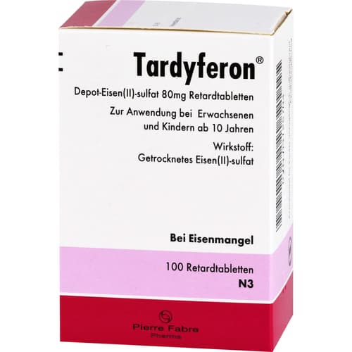 Tardyferon Depot-Eisen(II)-sulfat 80 mg Retardtabletten. Wirkstoff: Getrocknetes Eisen(II)-sulfat. Anwendungsgebiete: zur Therapie von Eisenmangelzuständen.Zu Risiken und Nebenwirkungen lesen Sie die Packungsbeilage und fragen Sie Ihre Ärztin, Ihren Arzt oder in Ihrer Apotheke.