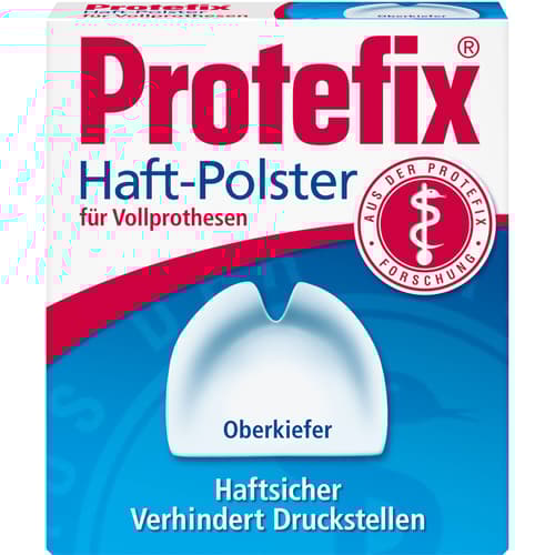 Wirksamer Schutz vor Druckstellen und Entzündungen, bewährt bei schwierigen Kieferverhältnissen oder großen Haftproblemen. Vor allem für die besonderen Problemfälle der Interimszeit empfehlen Zahnärzte zur Unterfütterung in den entstandenen Hohlräumen Protefix Haft-Polster für Unter- und Oberkieferprothesen. Die Haft-Polster bestehen aus feinem, gaumenfreundlichem Vliesgewebe, das Natriumalginat enthält und nach kurzem Anfeuchten die Haftkraft zusätzlich unterstützt. So bieten die Polster wirksamen Schutz vor Druckstellen und Entzündungen. Neben ihrer Bedeutung bei Interimsprothesen haben sie sich auch bei starker Kieferrückbildung - hier besonders beim Unterkiefer - bewährt, wenn dieser sehr schmal oder stark abgeflacht ist. Für Träger von Vollprothesen mit extremen Haftproblemen sind Protefix Haft-Polster daher oft die letzte Rettung, wenn sonst nichts mehr halten will.