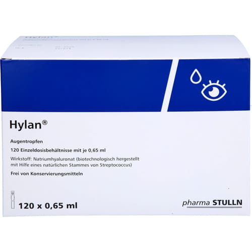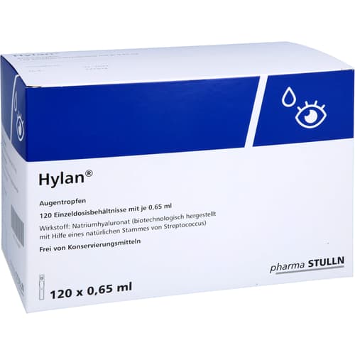 Hylan. Wirkstoff: Natriumhyaluronat. Anwendungsgebiete: Dieses Arzneimittel wird zur symptomatischen Behandlung beim trockenen Auge (Dry Eye Syndrom) eingesetzt.Zu Risiken und Nebenwirkungen lesen Sie die Packungsbeilage und fragen Sie Ihre Ärztin, Ihren Arzt oder in Ihrer Apotheke.