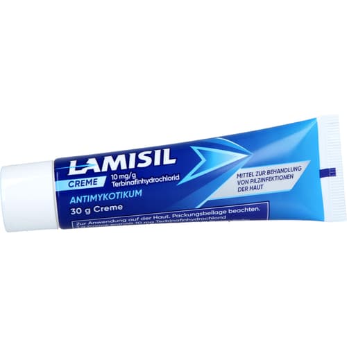 Lamisil Creme 1 %. Wirkstoff: Terbinafinhydrochlorid. Anwendungsgebiete: Pilzinfektionen der Haut, wie z.B. Fußpilz (Athletenfuß, Sportlerfuß = Tinea pedis; einschließlich der Behandlung eines freigelegten Nagelbettes, z.B. in Folge einer nagelauflösenden Nagelpilztherapie), Hautpilzerkrankungen an den Oberschenkeln und am Körper (Tinea corporis), Hautpilzerkrankungen in der Leistengegend (Tinea cruris), Hautcandidose, Kleienpilzflechte (Pityriasis versicolor), die durch Dermatophyten, Hefen oder andere Pilze (Pityrosporum orbiculare/Malassezia furfur) verursacht werden.Zu Risiken und Nebenwirkungen lesen Sie die Packungsbeilage und fragen Sie Ihre Ärztin, Ihren Arzt oder in Ihrer Apotheke.
