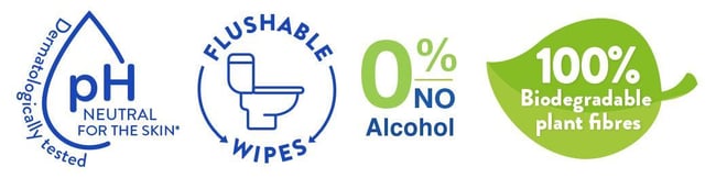 - Herunterspülbare Tücher: Die Tücher sind unbedenklich für die Rohre, da sie heruntergespült werden können (maximal 2 Tücher pro Spülung).