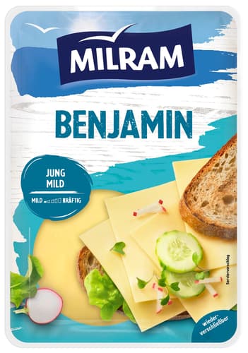 Milram Benjamin ist ein köstlicher, laktosefreier Schnittkäse aus Deutschland, der mit seinem milden, frischen Geschmack und seiner cremigen Konsistenz begeistert. Hergestellt aus pasteurisierter Kuhmilch und mit mikrobiellem Lab, ist er auch für Vegetarier geeignet. Mit 48% Fett i. Tr. bietet dieser Käse eine ausgewogene Kombination aus Genuss und Nährwert. Die praktischen 150g-Scheiben sind ideal für Sandwiches, zum Überbacken oder als Snack.