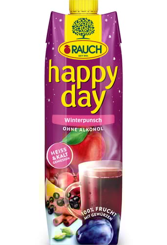 Happy Day Winterpunsch ist eine bereits trinkfertige alkoholfreie Komposition aus 100% Frucht und auserlesenen Gewürzen und kann heiß oder kalt genossen werden. Seinen fruchtig würzigen Geschmack entfaltet der Happy Day Winterpunsch aber besonders gut wenn er schonend erwärmt wird (nicht kochen) und sorgt für gemütliche Stimmung an winterlichen Tagen.
