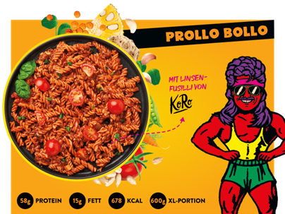 Ist die Bollo nicht unser aller Lieblingsessen?! Deswegen haben wir PROLLO BOLLO zu unserem PROTEIN-Lieblingsgericht gemacht. Unser pflanzlicher Italo-Klassiker in Bio-Qualität kommt mit 58g Protein aus feinsten Sonnenblumenkernen, Erbsen, Jackfruit und leckeren KORO-Linsen-Fusilli. Eine Power-Bollo für dicke Körner. Mama mia!!!