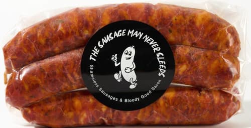 Mit einem gebrauchten Fleischwolf, den er auf dem Flohmarkt in Mauerpark fand, begann Simon, frische Würste für Freunde herzustellen, die entschieden nicht-traditionelle Geschmacksrichtungen hatten. Im April 2014 begann er, diese Waren zu verkaufen, und die offizielle Reise von The Sausage Man, Simons Muse und unserem charmanten Maskottchen, begann.