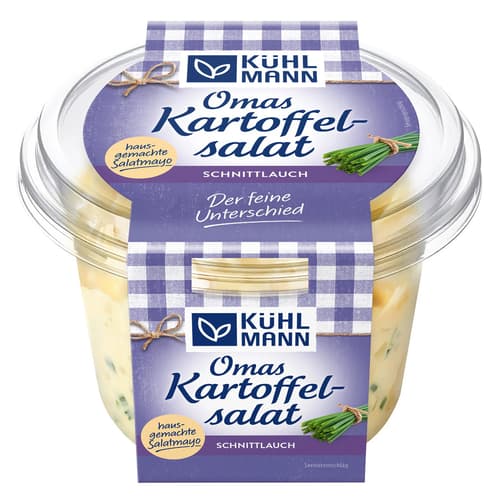 Kühlmann Omas Kartoffelsalat mit Ei und Gurke ist ein traditioneller Salat, der sich durch seine ausgewogene und schmackhafte Rezeptur auszeichnet. Mit 65 % hochwertigen Kartoffeln, 10 % Eiern und 5 % knackigen Gurken bietet dieser Salat einen unverwechselbaren Geschmack, der an die Hausmannskost von früher erinnert. Angereichert mit frischem Schnittlauch und fein abgestimmt mit Branntweinessig, Gewürzen und einem Hauch Zucker, erhält dieser Salat seine besondere Note. Ohne Konservierungsstoffe und mit natürlichen Zutaten zubereitet, ist er ein idealer Begleiter für Grillfeste, Picknicks oder als Beilage zu herzhaften Gerichten. Die cremige Konsistenz wird durch die Zugabe von Rapsöl und EIGELB erreicht, was dem Salat eine besonders angenehme Textur verleiht. Kühl und frisch serviert, bietet dieser Kartoffelsalat ein authentisches Geschmackserlebnis, das Groß und Klein begeistert.