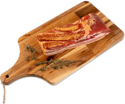 98% Schweinebauch ohne Rippenknochen Nitritpökelsalz (Konservierungsmittel E 250, Salz) und Rauch