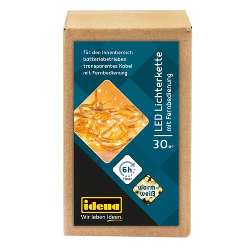 Idena Lichterkette 30 LED warmweiß 6h Timer, für den Innenbereich