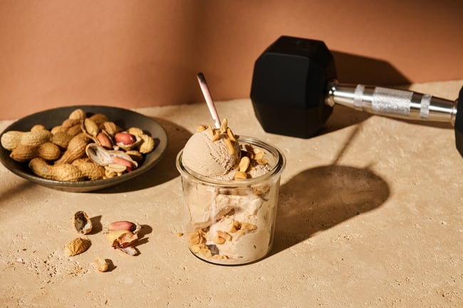 Cremig, nussig und voller Power: Das High Protein Peanut Gelato mit intensivem Erdnussgeschmack und ganzen 30 g Protein pro Eis.