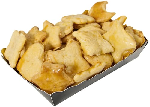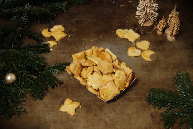 Zutaten: WEIZENmehl, BUTTER 35,1%, Zucker, EIER, EIGELB, WEIZENstärke, Meersalz, Bourbonvanilleextrakt, Säuerungsmittel: Zitronensäure
