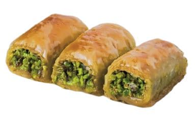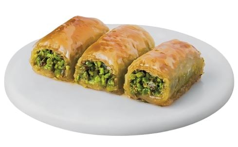 Tauchen Sie ein in die Welt des exquisiten Geschmacks mit unserer Pistachio Roll, einer einzigartigen Variante des klassischen Baklava. Diese Spezialität besticht durch ihre spiralförmige Struktur, die aus hauchdünnem Filoteig kunstvoll gerollt und mit edlen Nüssen gefüllt wird. Knackige Pistazien verleihen dem Gebäck seine unverwechselbare Textur und ein intensives Aroma.
