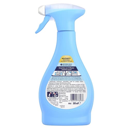 Der Textilerfrischer eignet sich hervorragend für schwer waschbare Textilien wie Sofas, Bezüge, Gardinen und Teppiche. Er überdeckt unangenehme Gerüche nicht nur, sondern beseitigt sie dauerhaft und sorgt so für langanhaltende Frische. Zudem ist der Febreze Textilerfrischer sicher in der Anwendung in der Nähe von Katzen und Hunden.