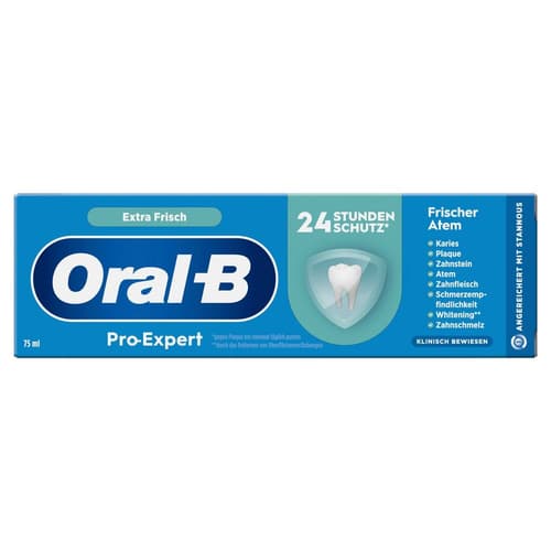 Oral-B steht seit Jahrzehnten für Innovation und Qualität in der Zahnpflege. Gemeinsam mit Experten entwickelt, bietet die Marke Produkte, die speziell auf die Bedürfnisse der ganzen Familie zugeschnitten sind. Die Pro-Expert Frischer Atem Zahncreme kombiniert fortschrittliche Technologie mit einem extra Frische-Kick – für saubere Zähne und langanhaltenden frischen Atem. Vertraue auf Oral-B und erlebe ein neues Level der Mundpflege.