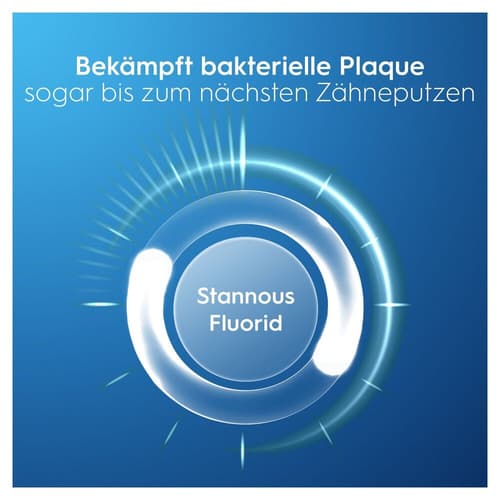 - Antibakterielle Technologie: Der Stannous Fluorid Komplex bildet einen Schutzschild, der das Wachstum von bakterieller Plaque reduziert, sogar bis zum nächsten Zähneputzen.