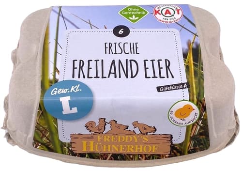 Freddys Hühnerhof Freiland Eier 6er L6 StkDieses Produkt ist nicht mehr verfügbar.Herkunftsland:laut dem aktuellen AngebotBitte kontaktiere unseren Kundenservice, um genauere Informationen zu erhalten.