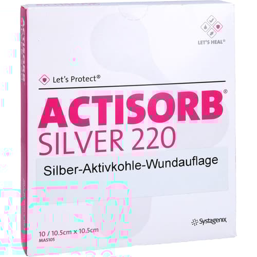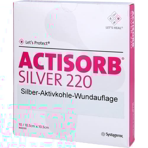 ACTISORB 220 Silver 9,5 x 6,5 cm sterile Silber-Aktivkohle-Wundauflage, 10 St. Kompressen