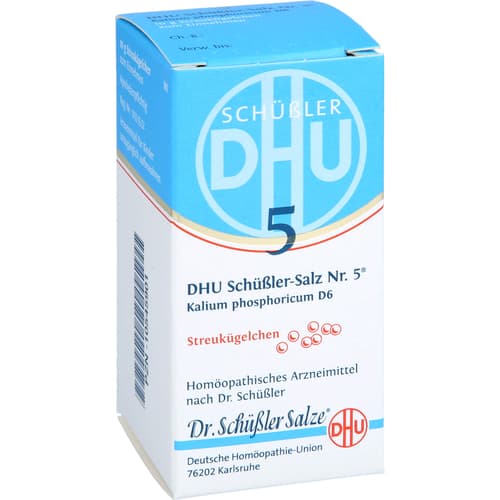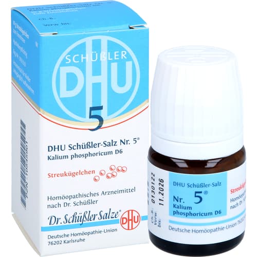 DHU Schüßler-Salz Nr. 5 Kalium phosphoricum D6 Streukügelchen – Das Mineralsalz der Nerven und Psyche – das Original – umweltfreundlich im Arzneiglas, 10 g Globuli