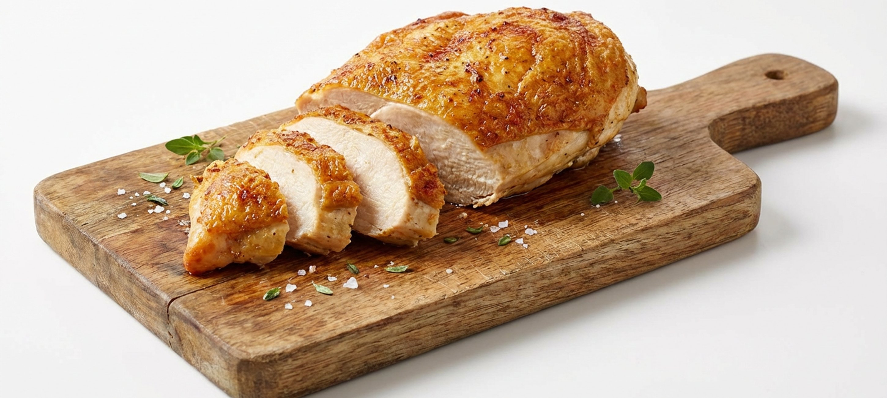 - 4Das fertige Fleisch aus dem Ofen nehmen, auf ein Schneidebrett legen und ca. 6 Minuten ruhen lassen. Anschließend in Tranchen schneiden und sofort servieren.