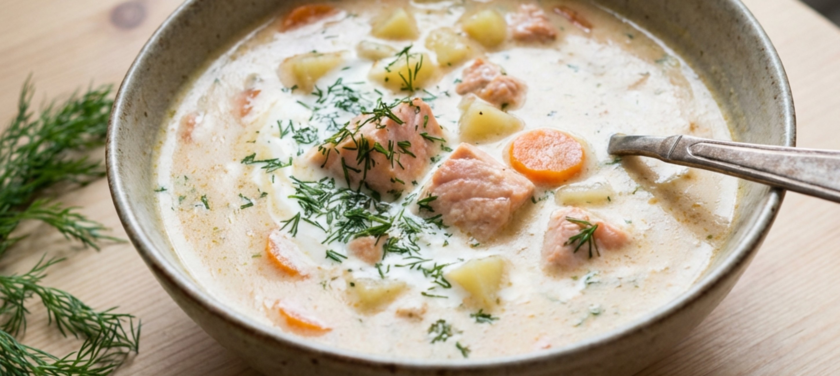 - 4Nach der Kochzeit die Sahne, die Lachswürfel und den gehackten Dill in den Topf geben. Alles für weitere 3–4 Minuten bei mittlerer Hitze ziehen lassen, bis der Lachs gar ist.