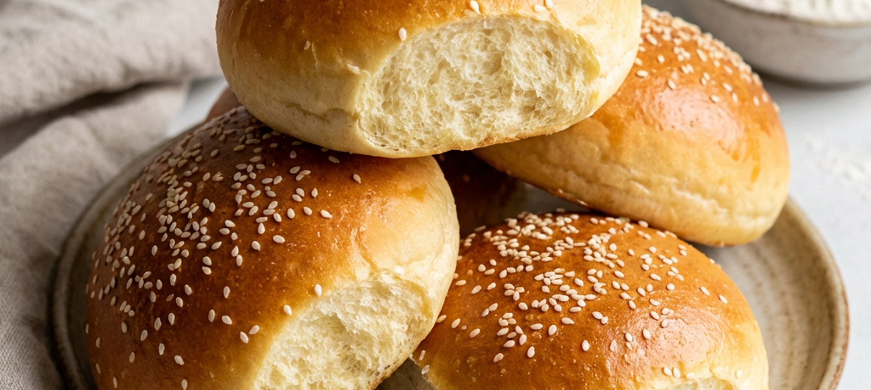- 9Ein Ei (oder das übrig gebliebene Eiweiß) mit 20 ml kaltem Wasser oder Milch verquirlen. Die Buns vorsichtig damit bestreichen, mit Sesam bestreuen und in den heißen Ofen schieben.