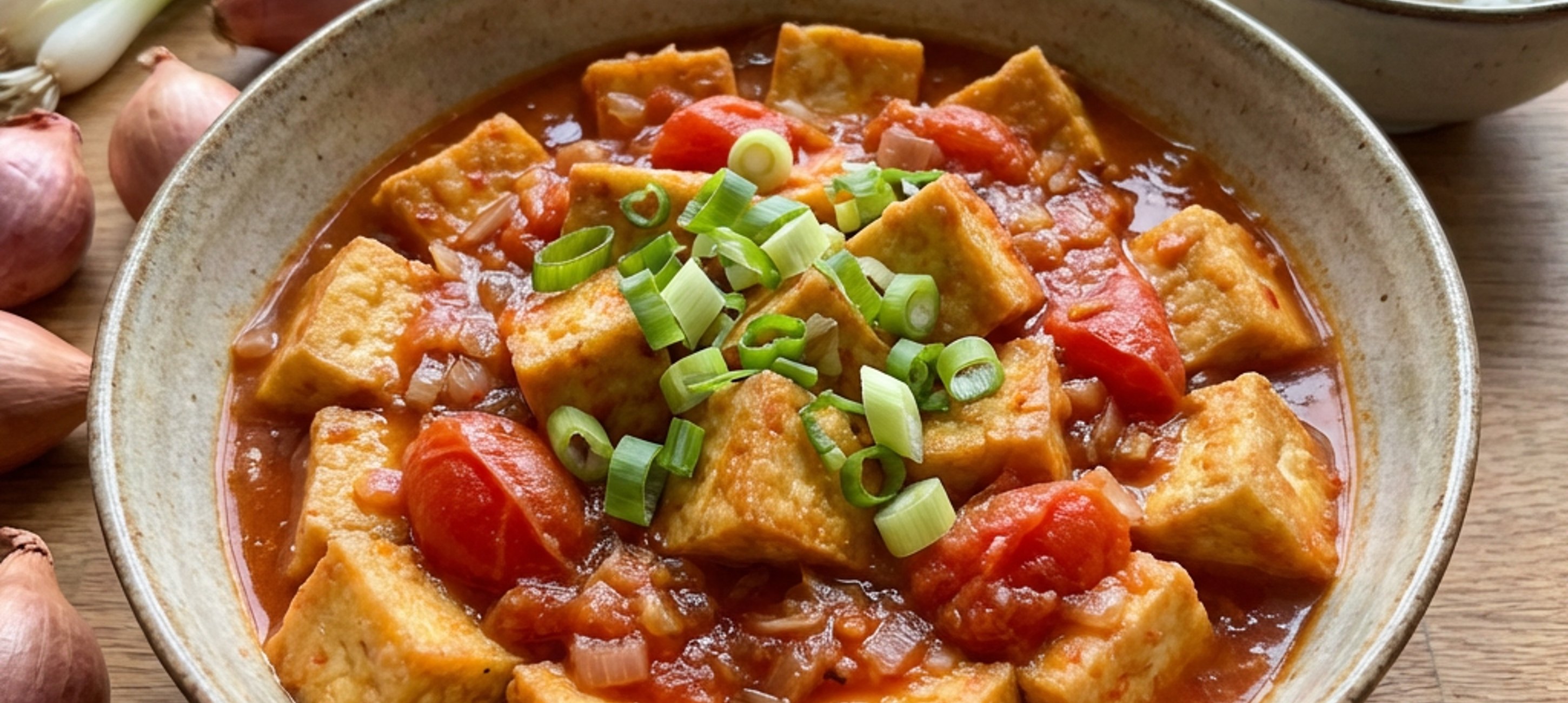 - 5Den Tofu in Tomatensauce heiß zusammen mit gekochtem Jasminreis servieren.