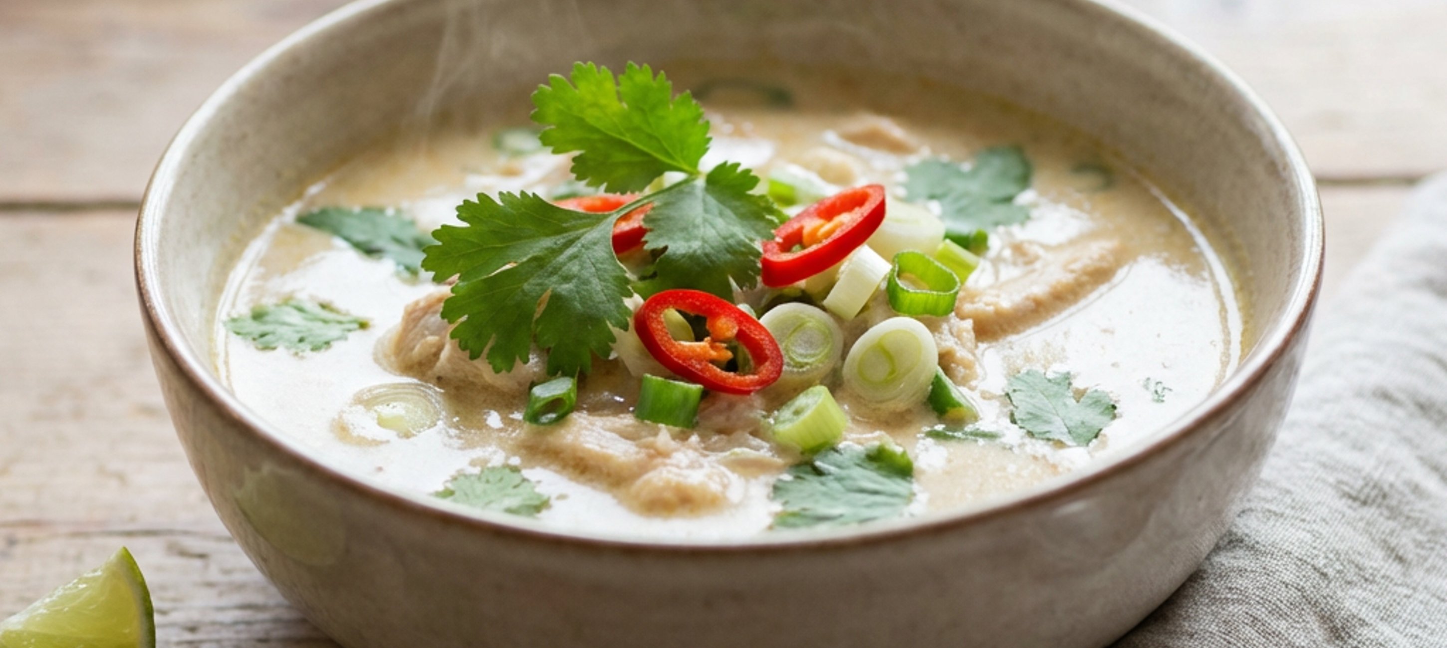 - 6Serviervorschlag: Die Suppe heiß servieren. Für eine intensivere Note können Sie beim Kochen Zitronengras oder Kaffir-Limettenblätter hinzufügen. Wer es gehaltvoller mag, gibt in den letzten 3 Minuten der Garzeit geviertelte Champignons oder Austernpilze hinzu.
