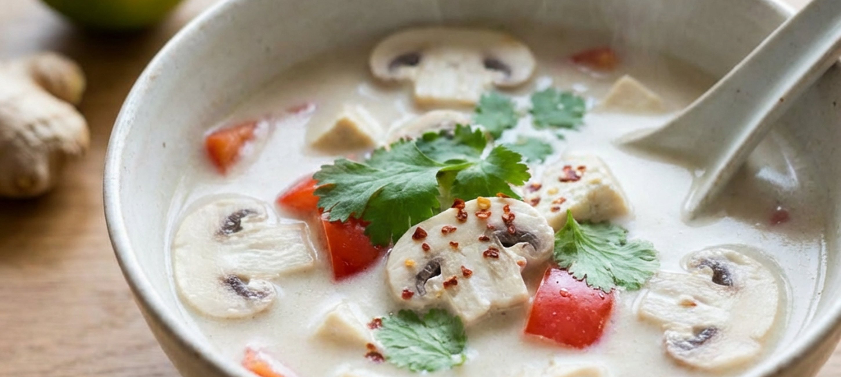 Diese Kokossuppe schmeckt wie beim Thailänder! Pikant, leichte Schärfe und mit fruchtigem Touch. So schön kann thailändische Kulinarik sein! Lass uns wissen, wie dir dein Gericht geschmeckt hat! #knusprküche