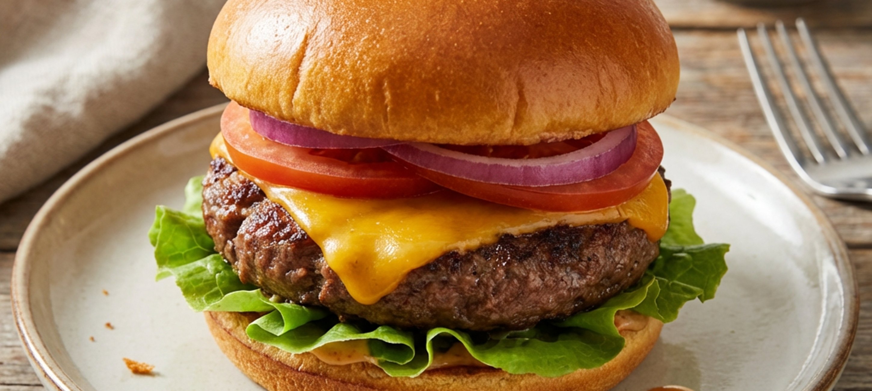 - 4Setze die obere Brötchenhälfte auf und serviere den Cheeseburger sofort, solange er noch heiß und saftig ist. Guten Appetit!
