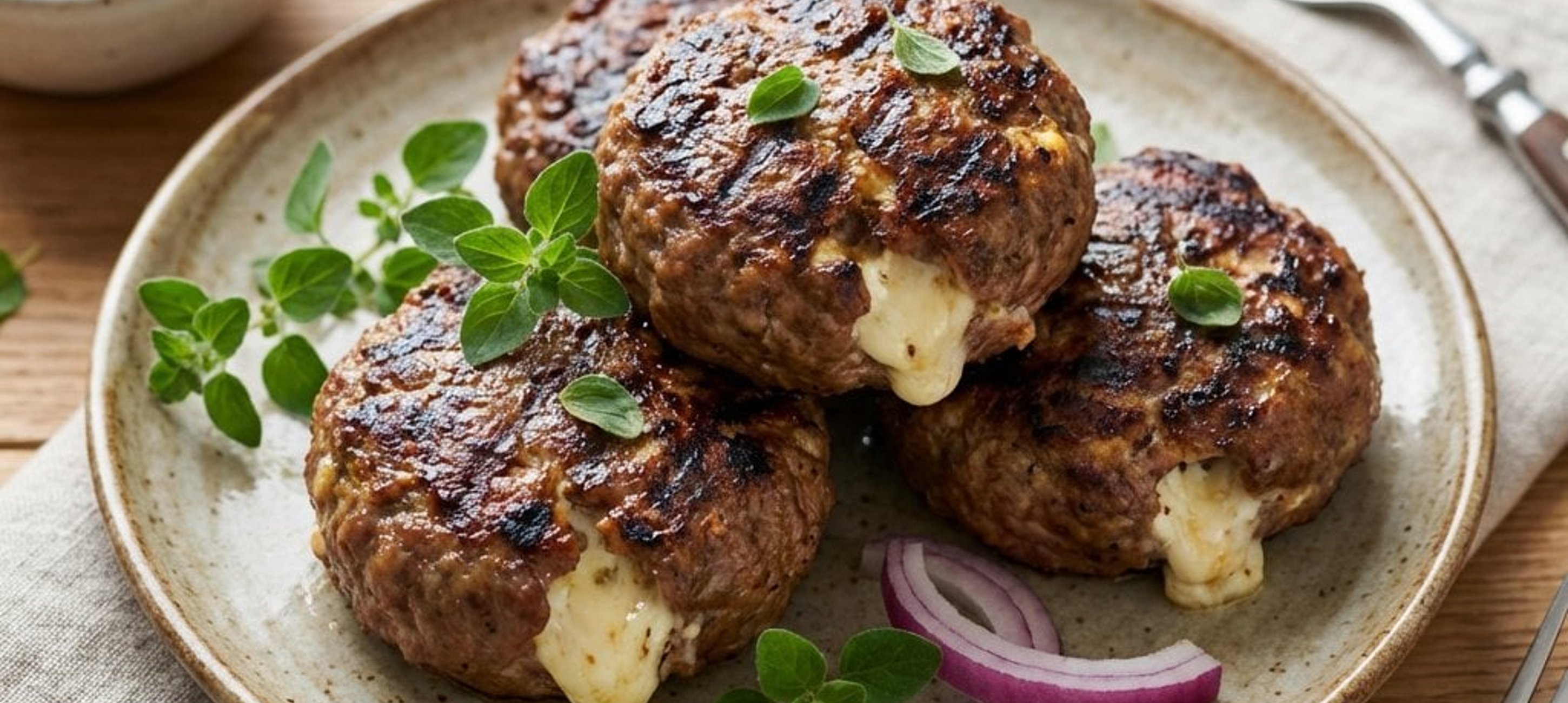 Ein kleiner Spritzer Zitronensaft über die fertigen Bifteki hebt die Aromen der frischen Kräuter noch einmal hervor. Dazu passt hervorragend ein kühler griechischer Weißwein.