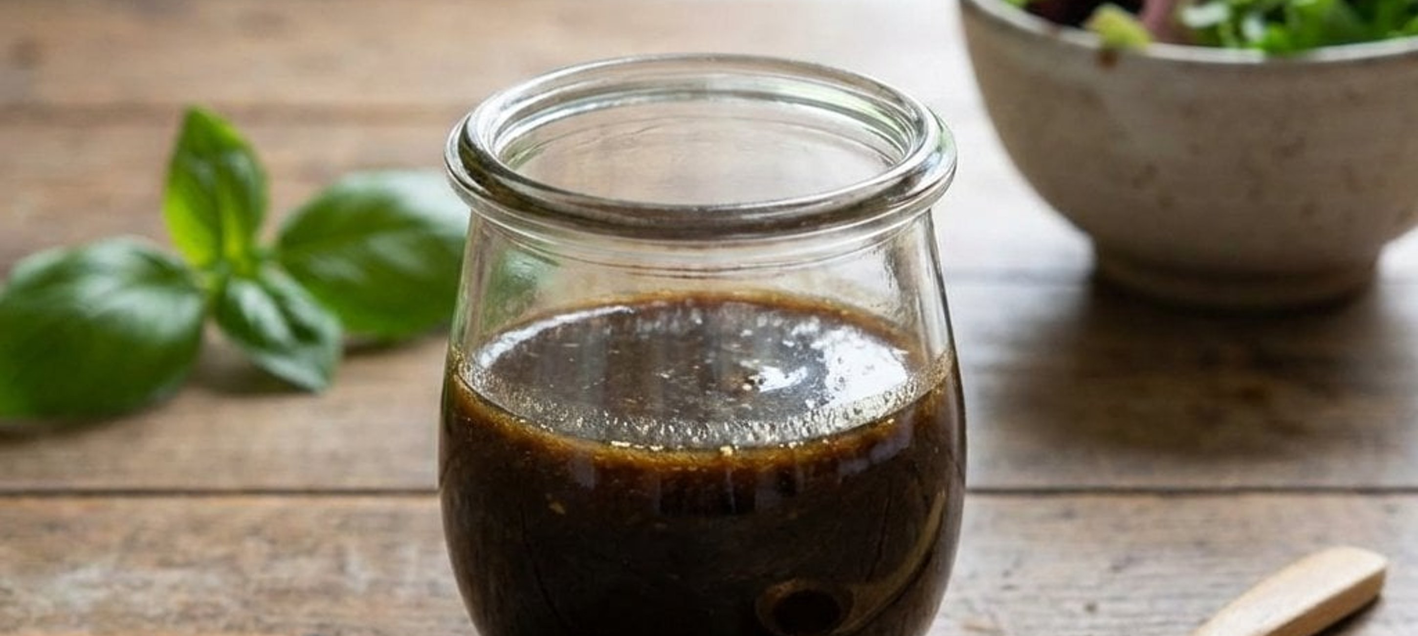 - 1Balsamico-Essig, Honig, Dijon-Senf, Salz und 1 Esslöffel Wasser in ein hohes, schmales Gefäß geben.