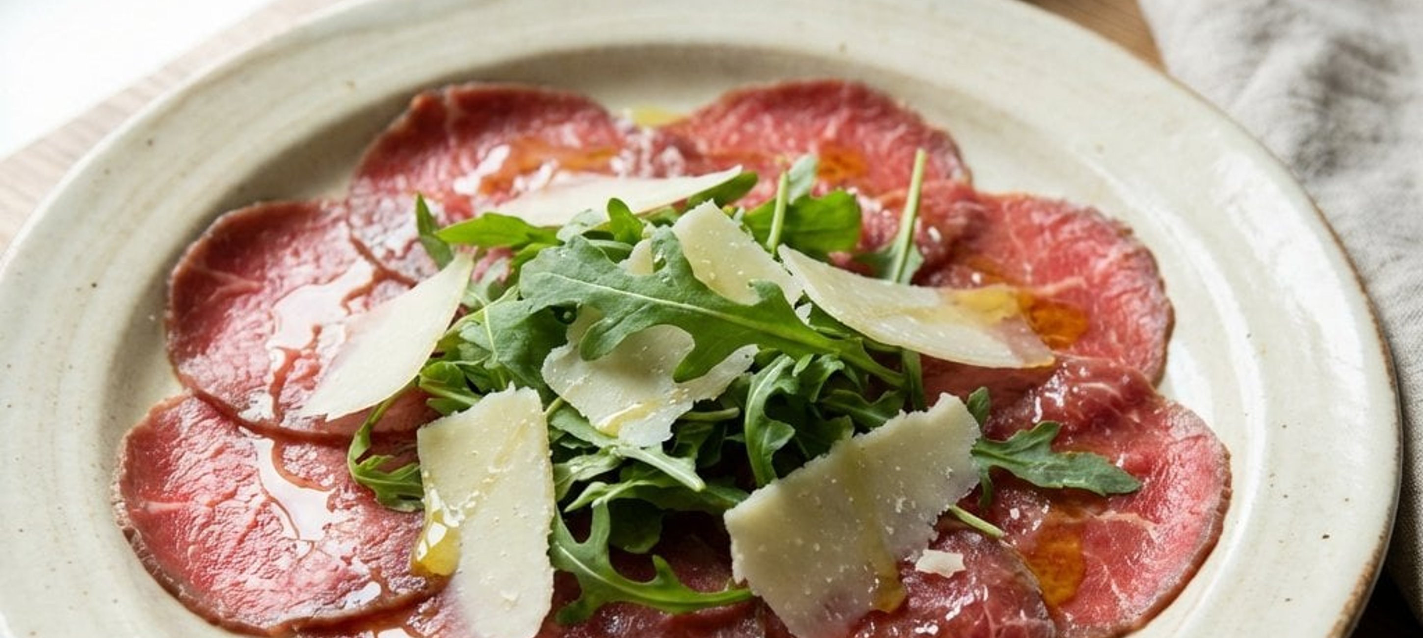 Servieren Sie das Carpaccio sofort nach der Zubereitung, damit das Fleisch seine zarte Textur behält. Ein frisch geröstetes Ciabatta ist die perfekte Begleitung.