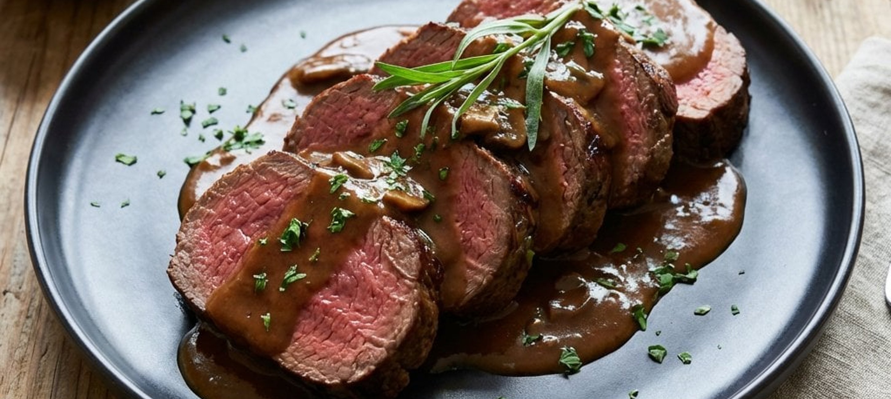 - 8Während das Fleisch ruht, die Sauce kurz erwärmen und die Teller im Ofen oder in der Mikrowelle vorwärmen.