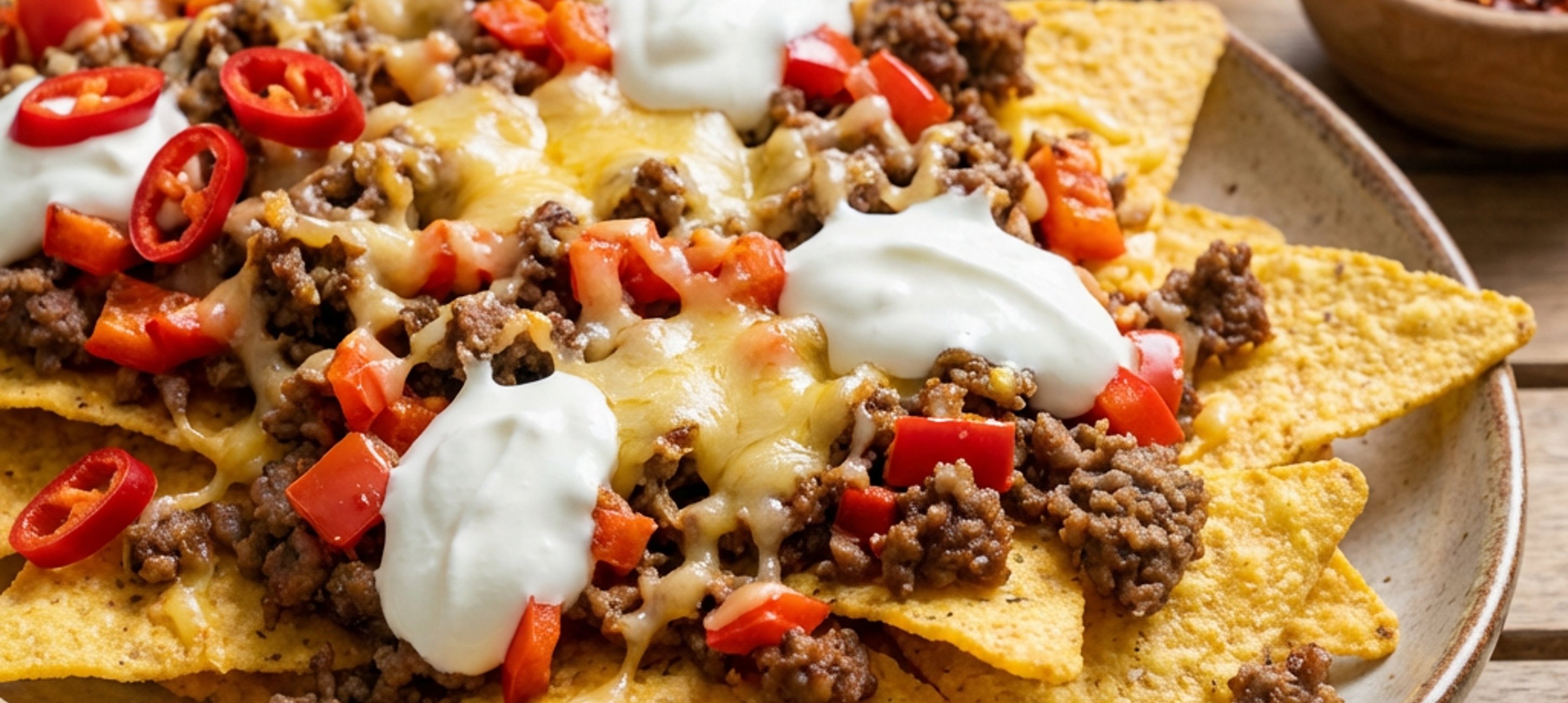 Für eine vegetarische beziehungsweise vegane Version dieses Kinosnack-Klassikers kannst du das Hackfleisch durch vegetarisches Hack/ Soja-Hack und veganen Reibekäseersatz austauschen.