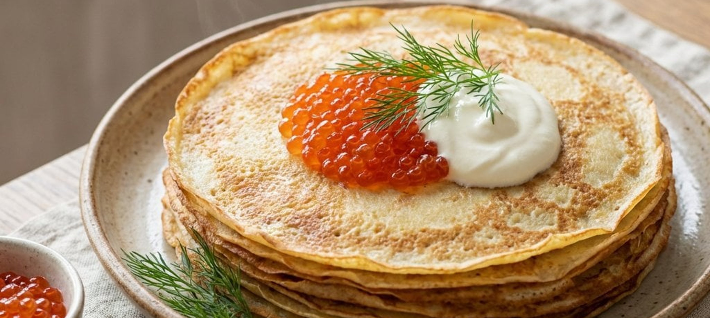 Servieren Sie die Bliny am besten noch warm, um den Kontrast zum kühlen Sauerrahm und Kaviar voll auszukosten. Ein Glas Champagner oder ein kühler Wodka runden das Erlebnis perfekt ab.