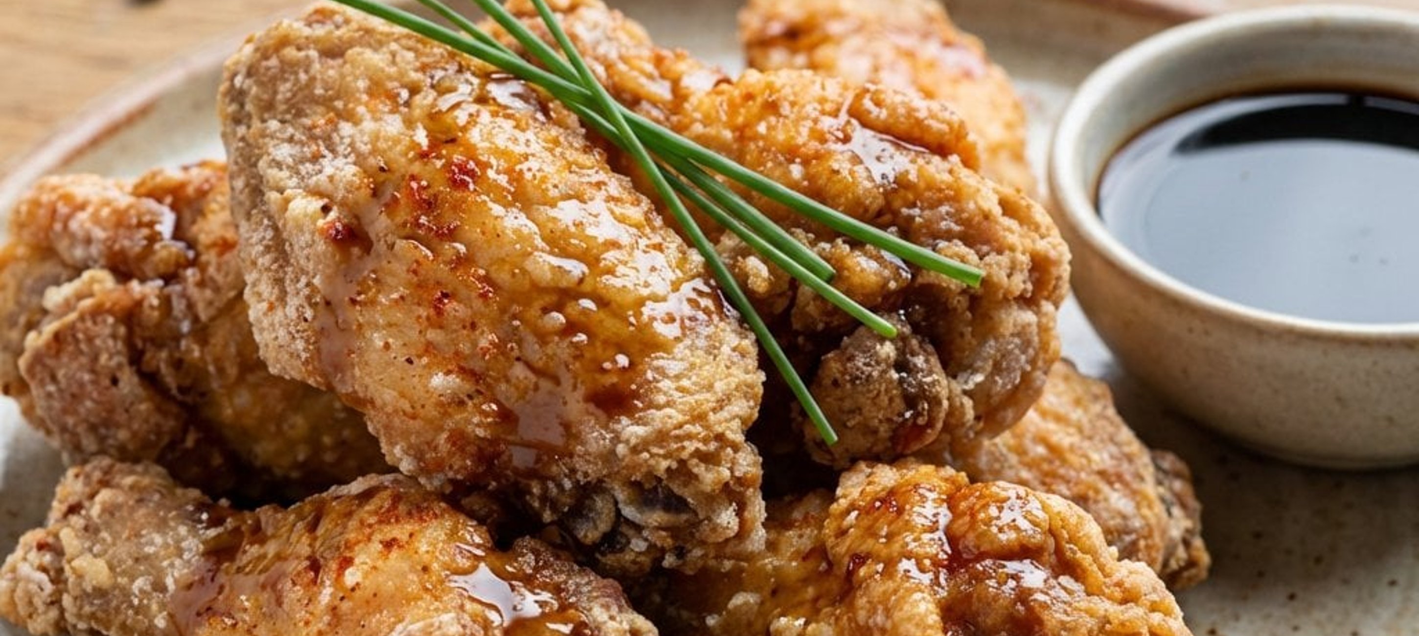 Für eine besonders würzige Note können Sie die frittierten Flügel direkt in der Sweet Chili Sauce wenden und anschließend mit dem Schnittlauch bestreuen.