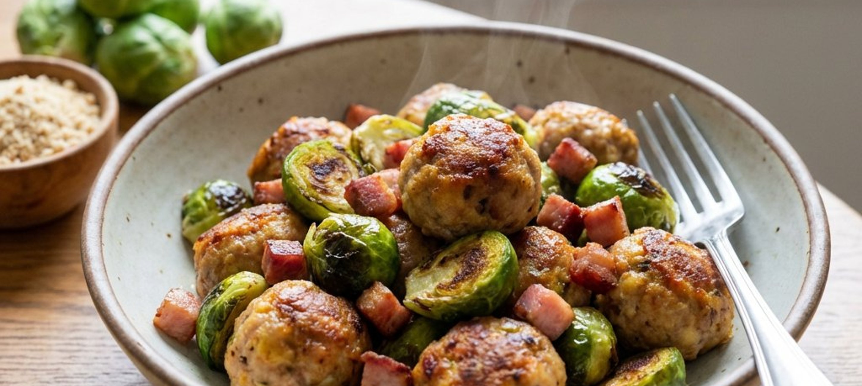 Für eine besonders feine Note können Sie eine Prise frisch geriebene Muskatnuss unter die Hackfleischmasse mischen – das passt hervorragend zum Rosenkohl.