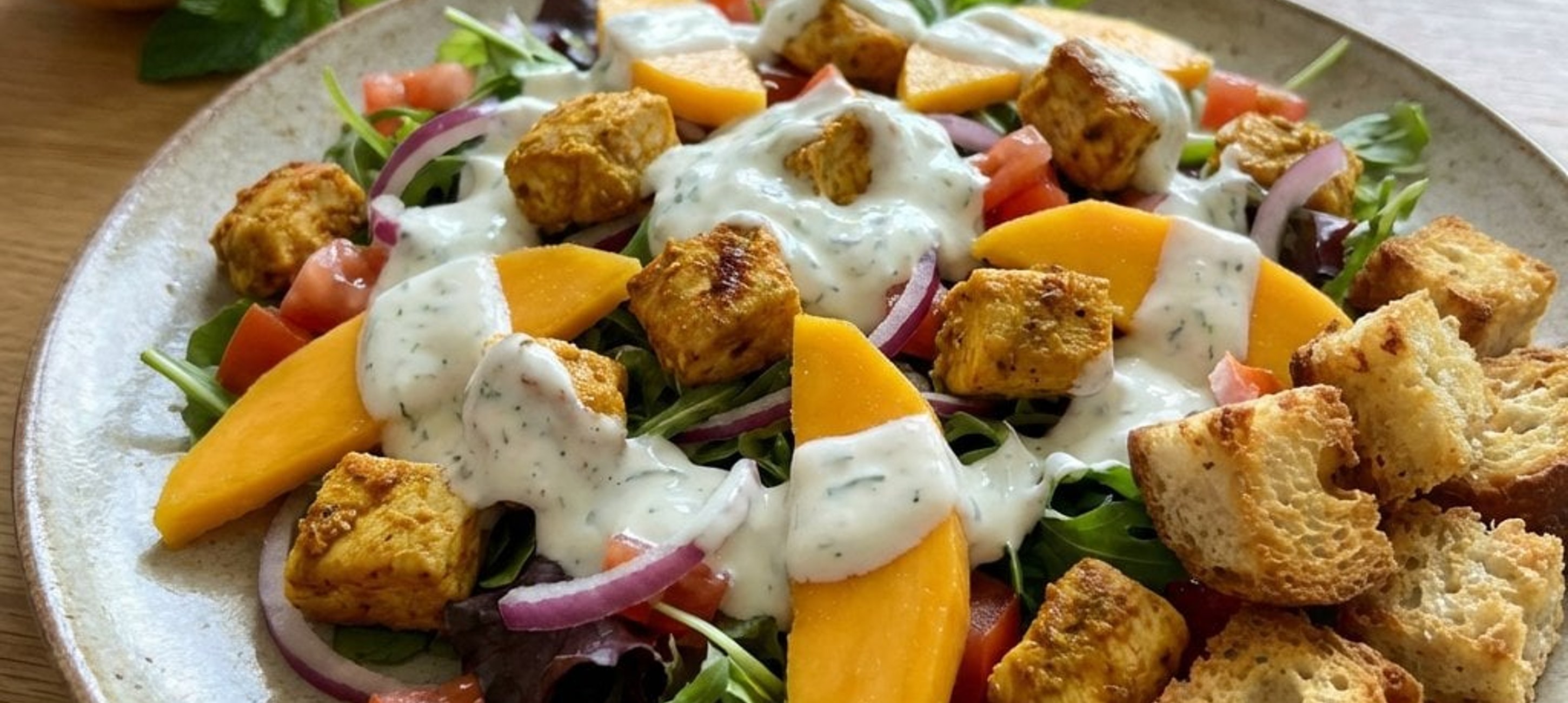 Indische Aromen treffen auf frische Mango – ein echtes Geschmackserlebnis! Für die Croutons eignen sich auch Brötchen vom Vortag hervorragend.