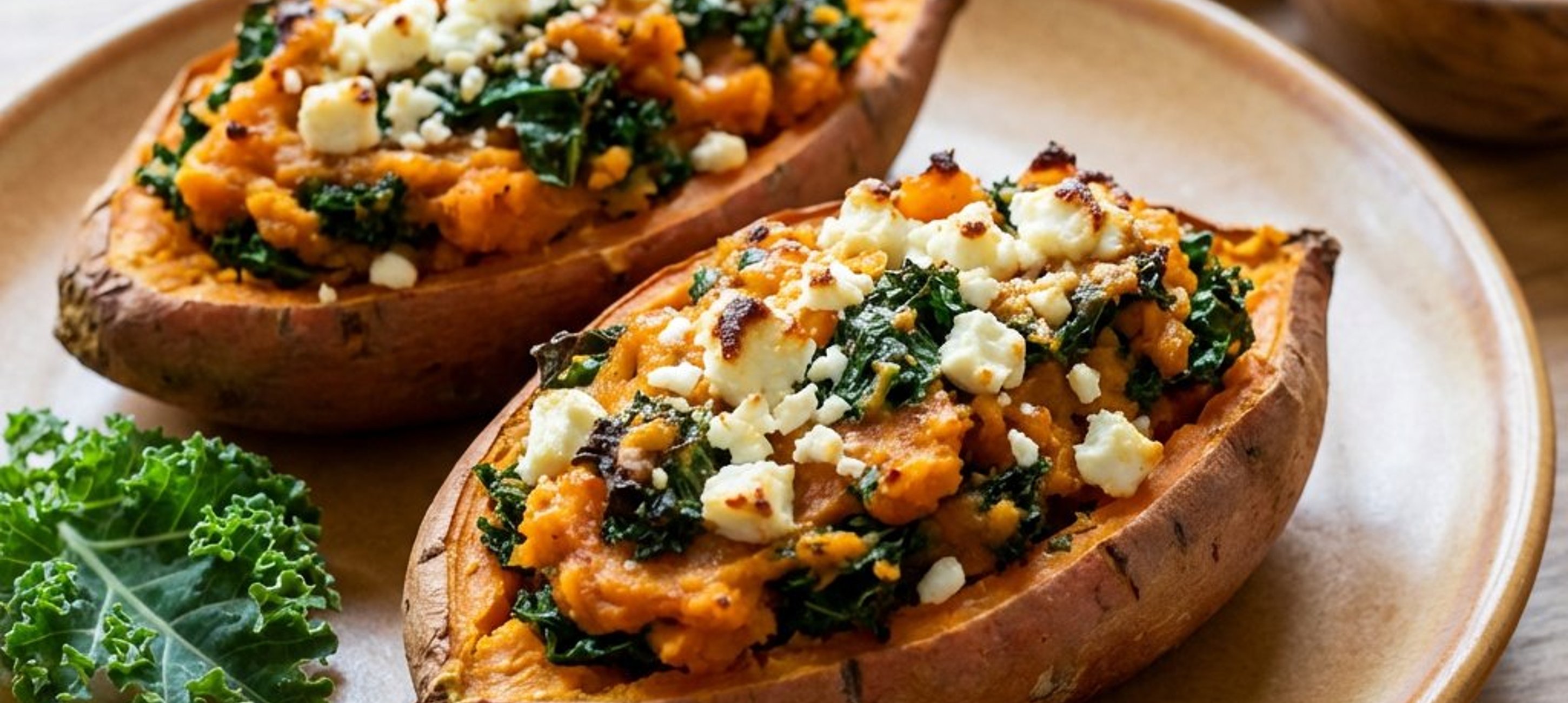 Servieren Sie die gefüllten Süßkartoffeln mit einem Klecks griechischem Joghurt oder einem frischen Blattsalat für eine extra Portion Frische.