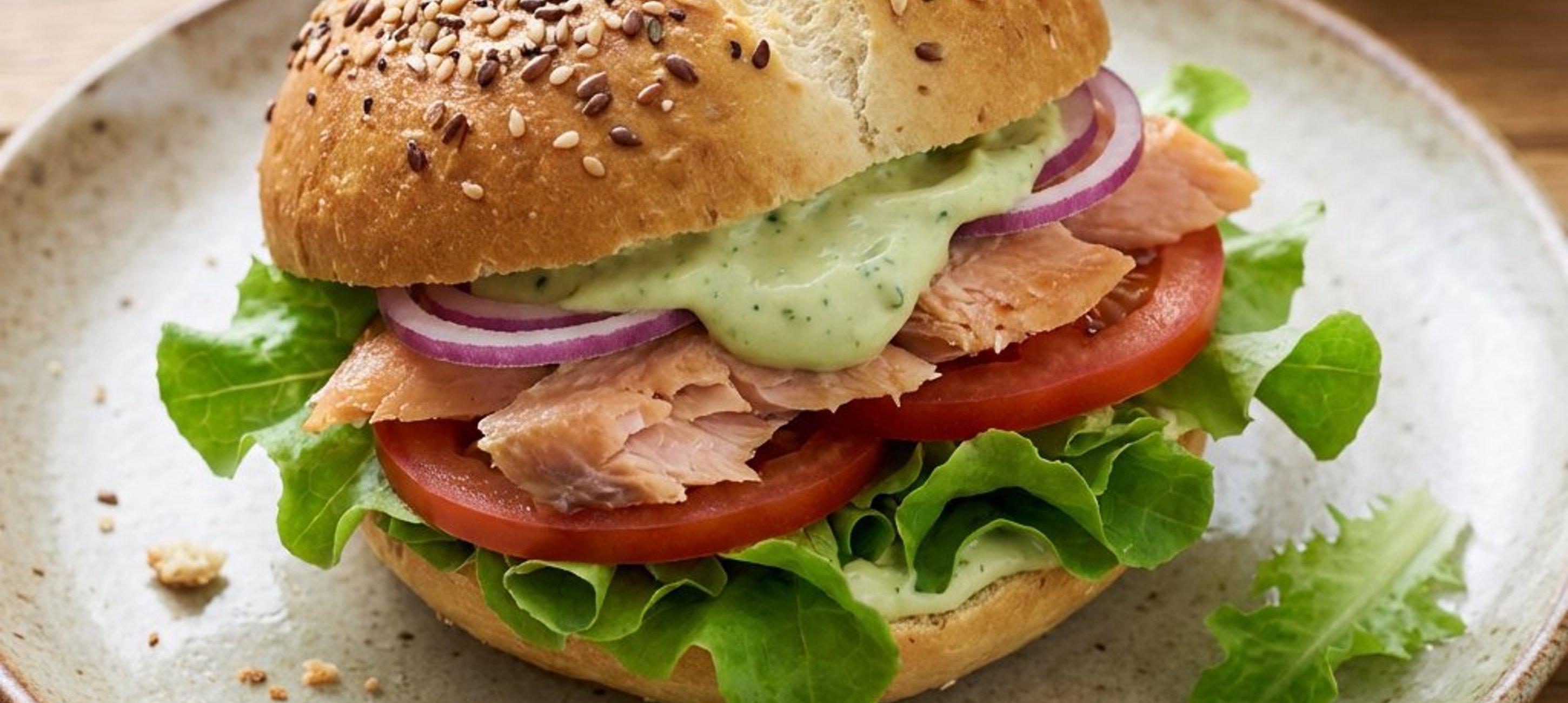 - 2Die abgekühlten Brötchen waagerecht aufschneiden. Auf die Unterseiten reichlich Dressing geben, mit Salatblättern und Tomatenscheiben belegen. Die Räucherforelle darauf verteilen und mit Zwiebelringen garnieren. Deckel aufsetzen und servieren.