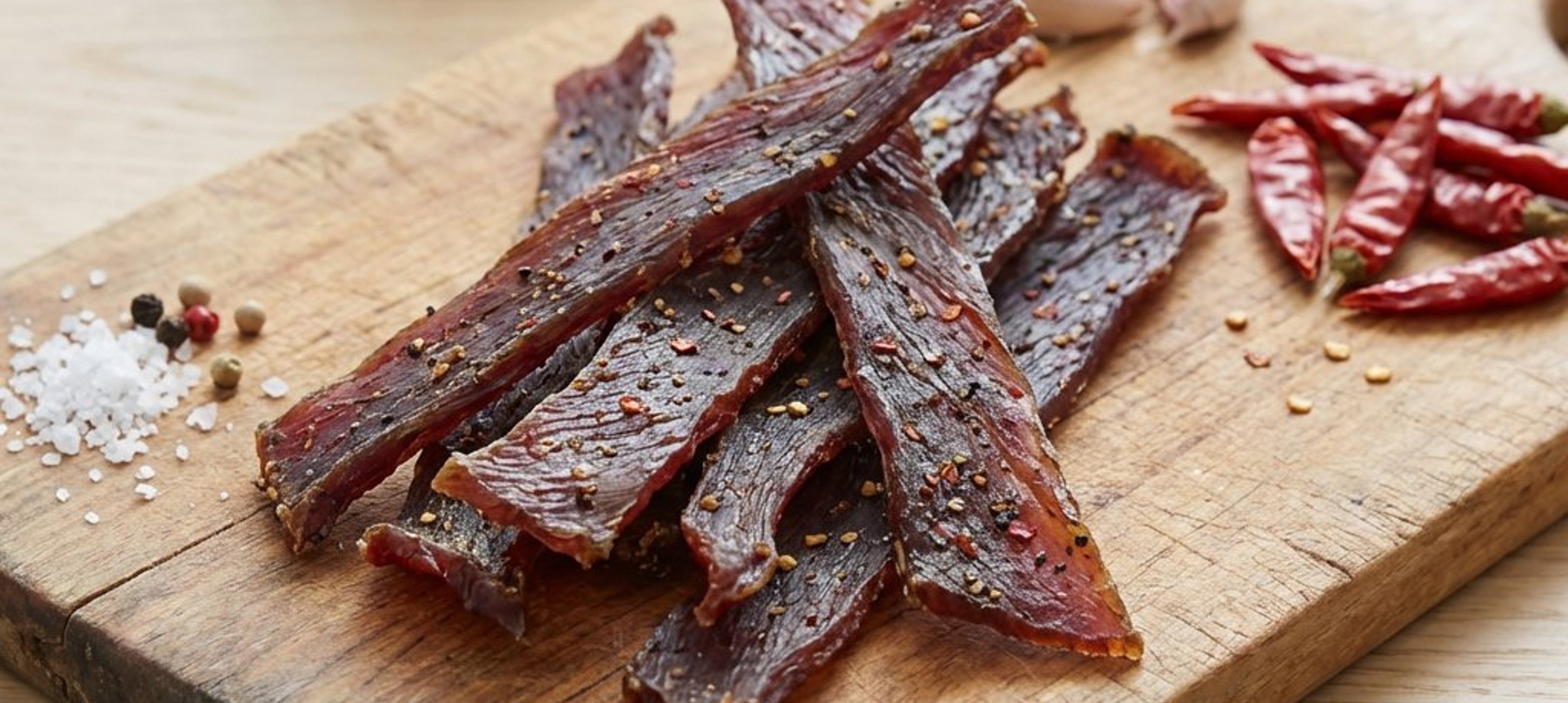 Für den besten Genuss das fertige Beef Jerky in mundgerechte Stücke schneiden. In einem luftdichten Behälter kühl und trocken lagern. Noch länger haltbar bleibt das Fleisch, wenn es portionsweise vakuummiert wird.