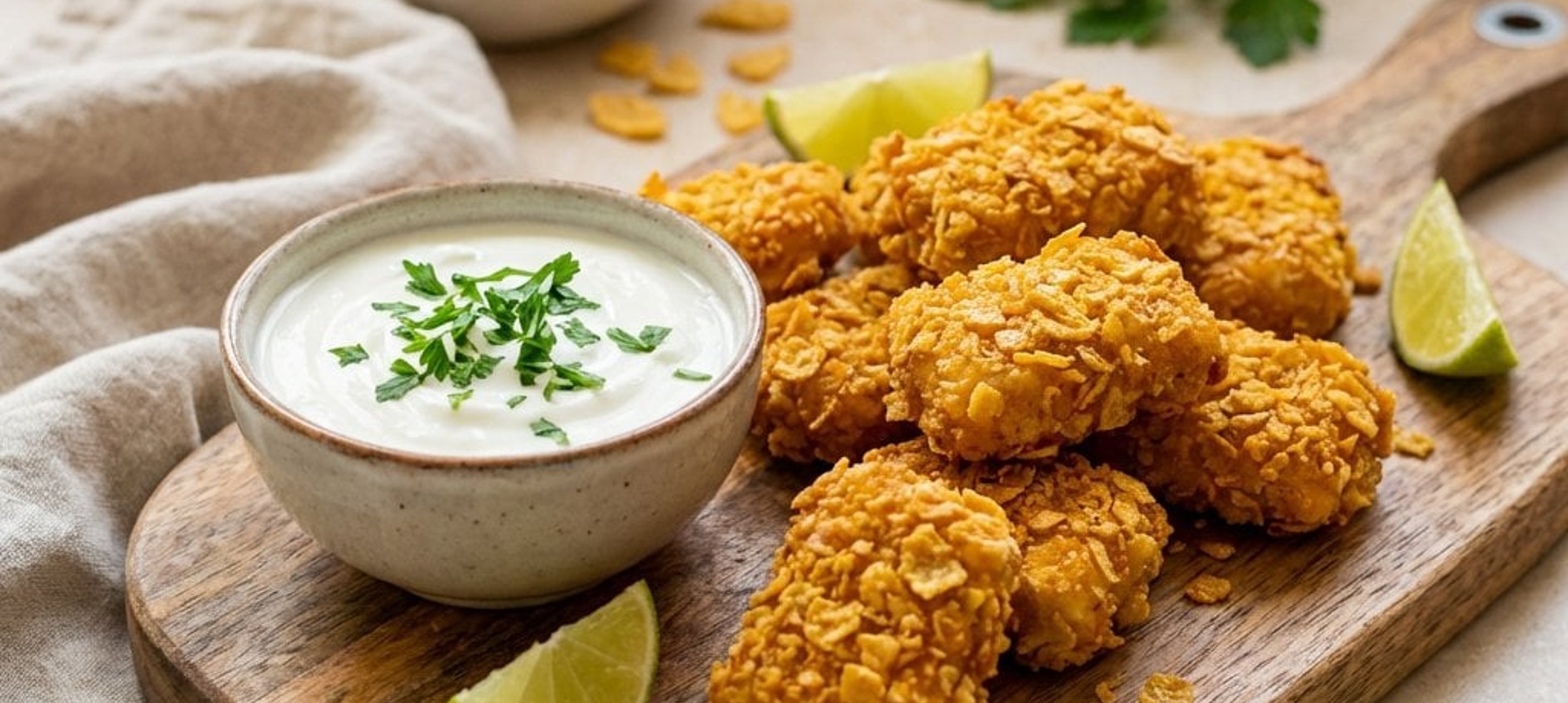 Servieren Sie die Nuggets mit einem frischen Blattsalat oder Ofenkartoffeln für eine vollwertige Mahlzeit. Ein Spritzer frischer Limettensaft über die heißen Nuggets hebt den Geschmack zusätzlich hervor.