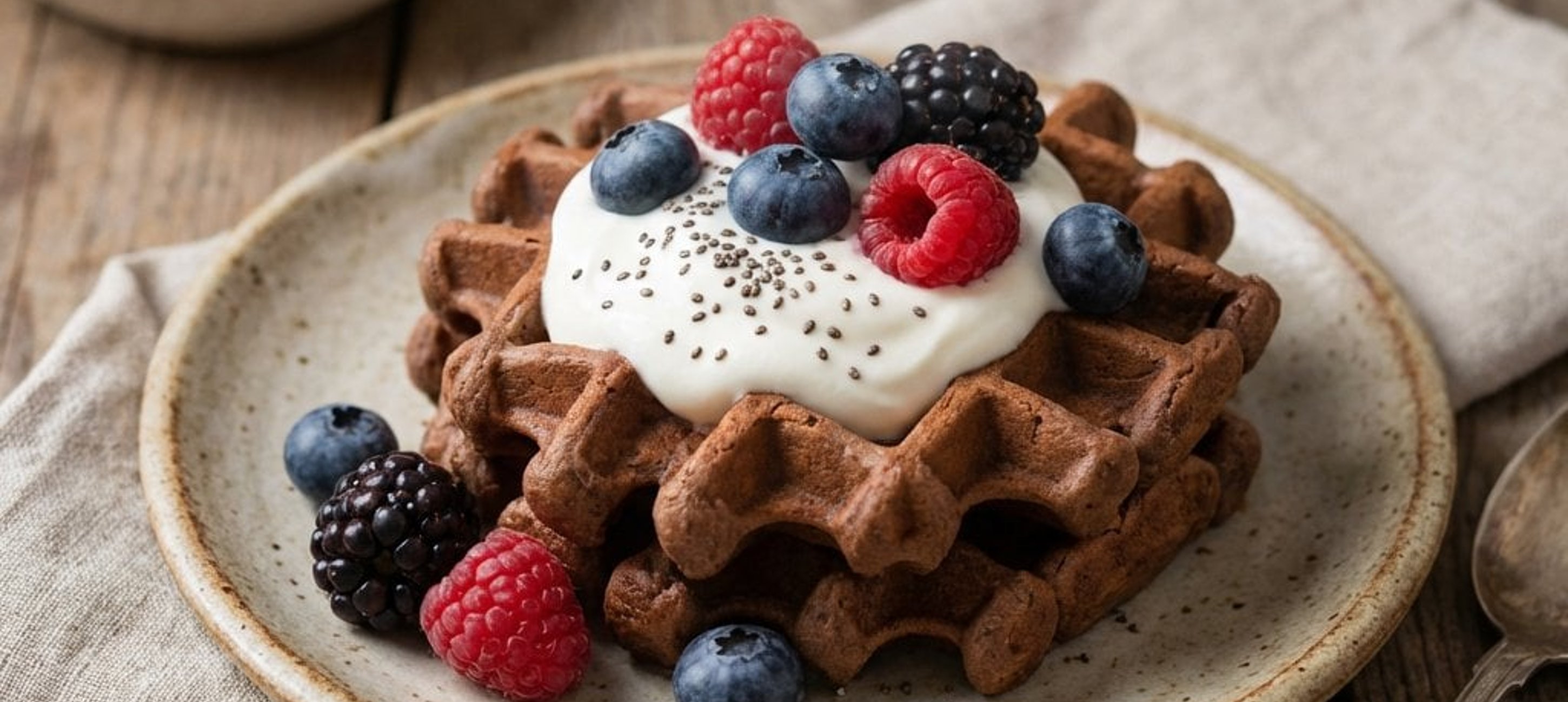 - 4Die fertigen Waffeln noch warm mit einem Klecks saurer Sahne und den Waldbeeren servieren. Guten Appetit!