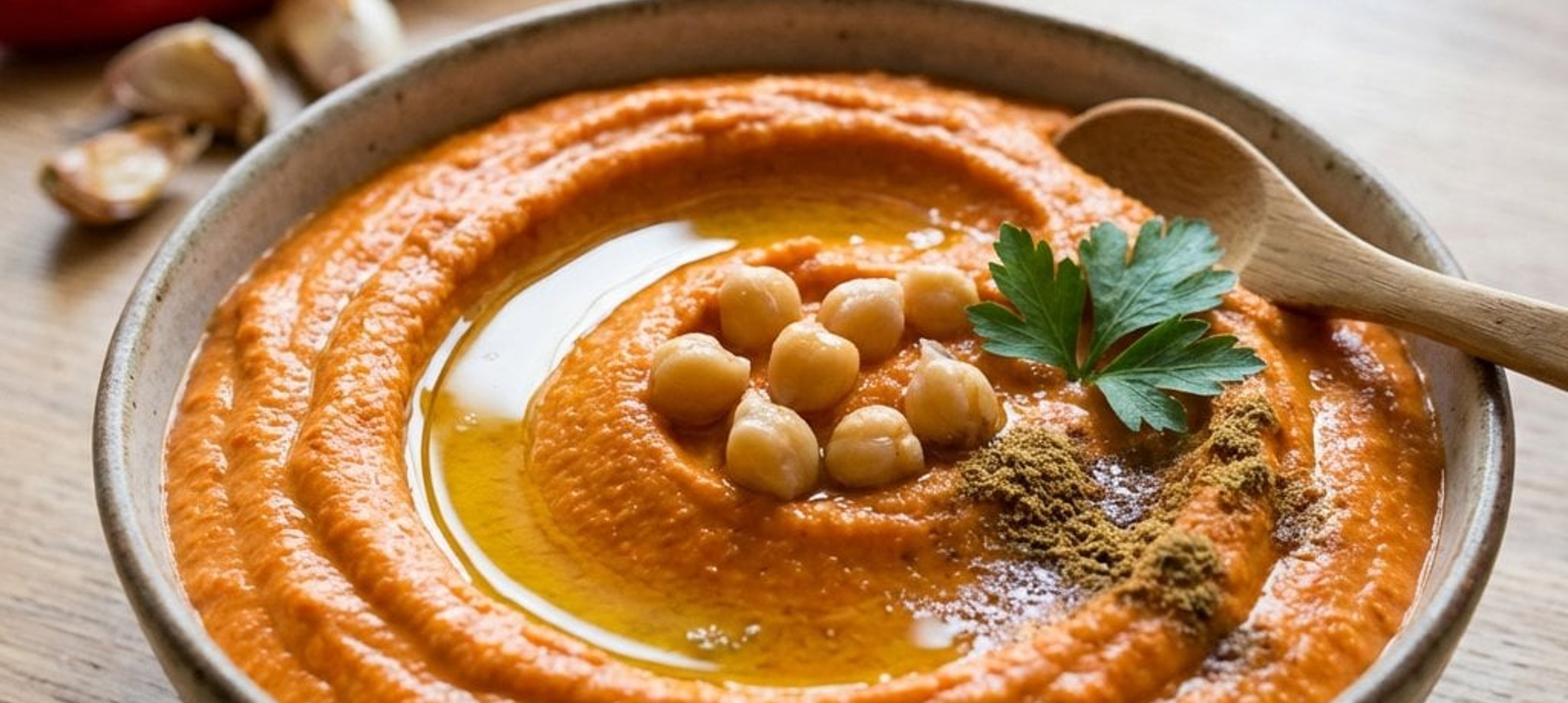 Servieren Sie diesen Hummus mit warmem Fladenbrot oder als Dip für frische Gemüsesticks wie Karotten und Sellerie. Ein Spritzer Olivenöl und eine Prise Paprikapulver als Garnitur runden das Gericht perfekt ab.