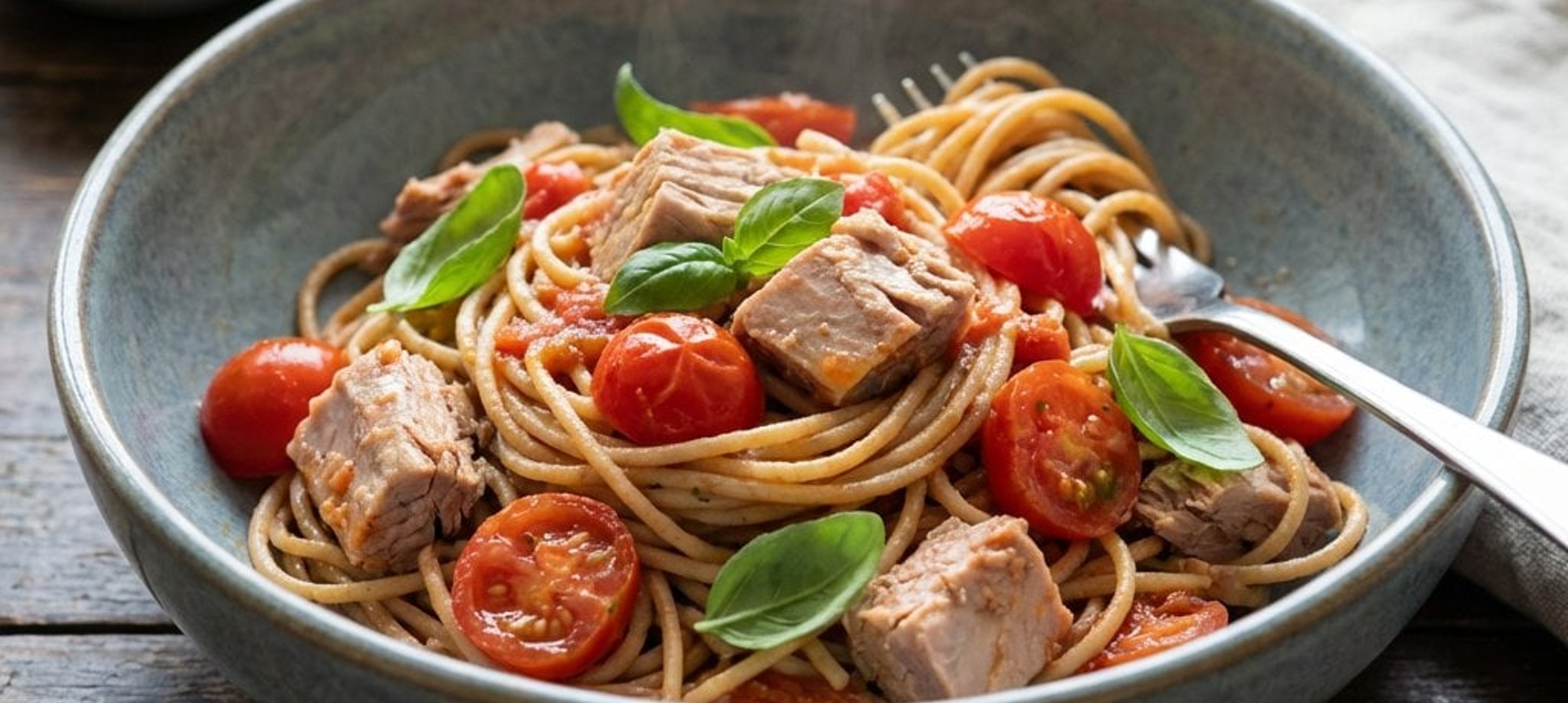 - 2Kurz bevor die Pasta fertig ist, etwa 100 ml des Nudelwassers abschöpfen. Die Pasta abgießen. Das Nudelwasser zusammen mit dem abgetropften Thunfisch in die Pfanne geben. Alles unter Rühren 1–2 Minuten bei mittlerer Hitze köcheln lassen, bis die Sauce leicht bindet.