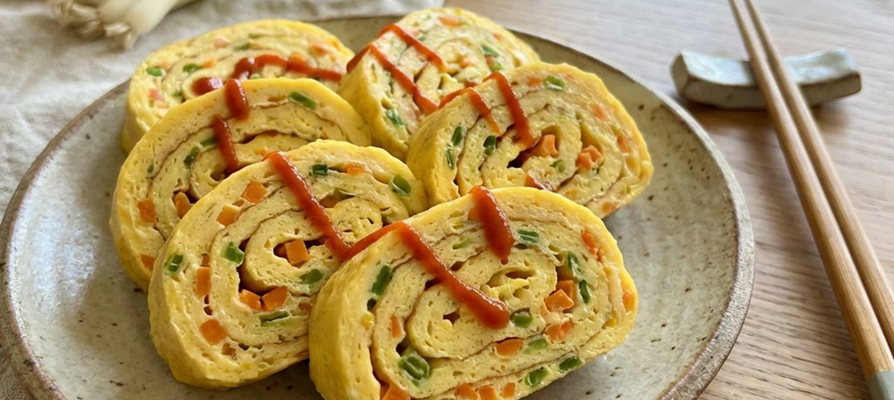 Tipp: Verwenden Sie eine rechteckige Pfanne (Tamagoyaki-Pfanne), um die perfekte Form noch einfacher zu erzielen. Servieren Sie das Omelett mit etwas Reis für eine vollwertige Mahlzeit.