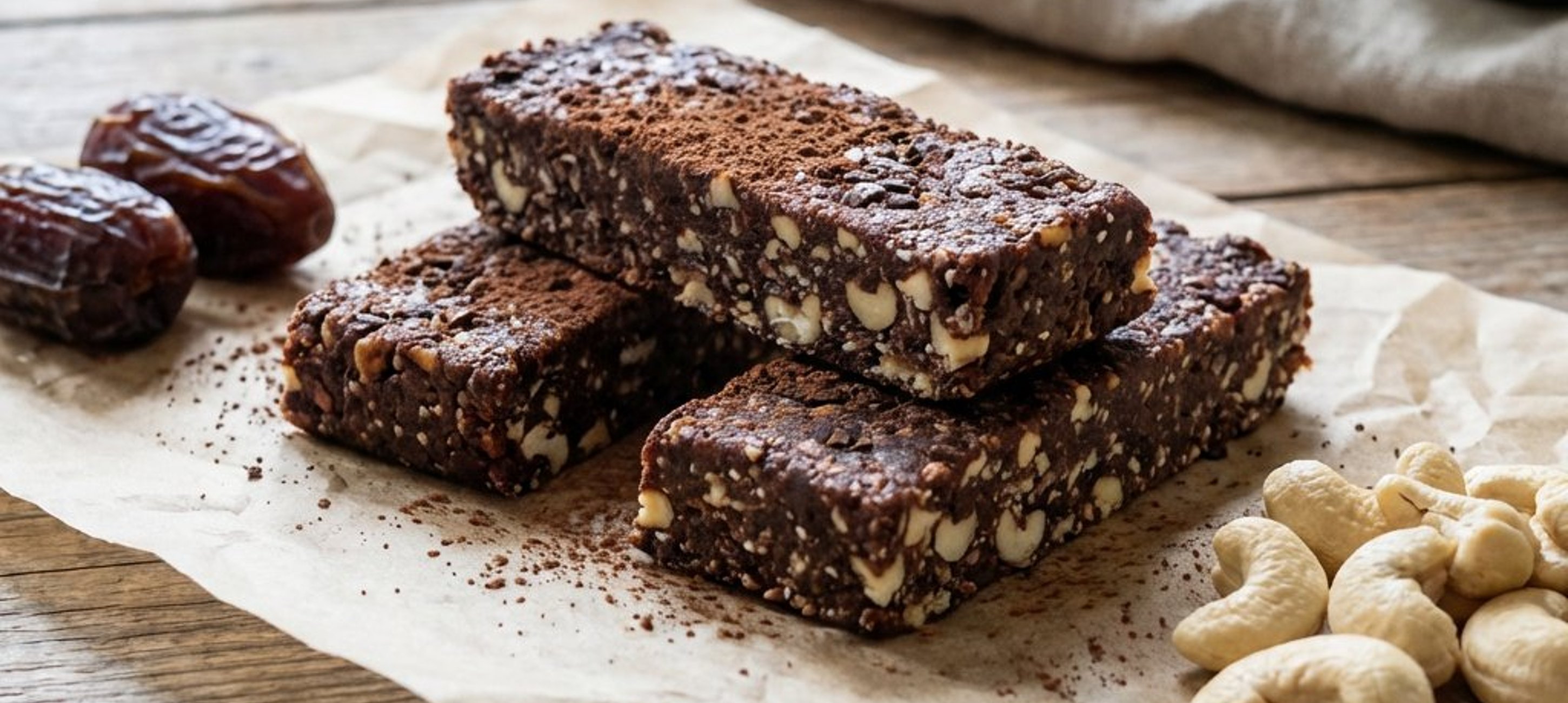 - 1Die Datteln mit Wasser bedecken und über Nacht einweichen lassen. Am nächsten Tag das Wasser abgießen, die Datteln in Stücke schneiden und fein mixen. Cashewkerne und Kakao hinzufügen und erneut kurz mixen, bis eine formbare Masse entsteht.