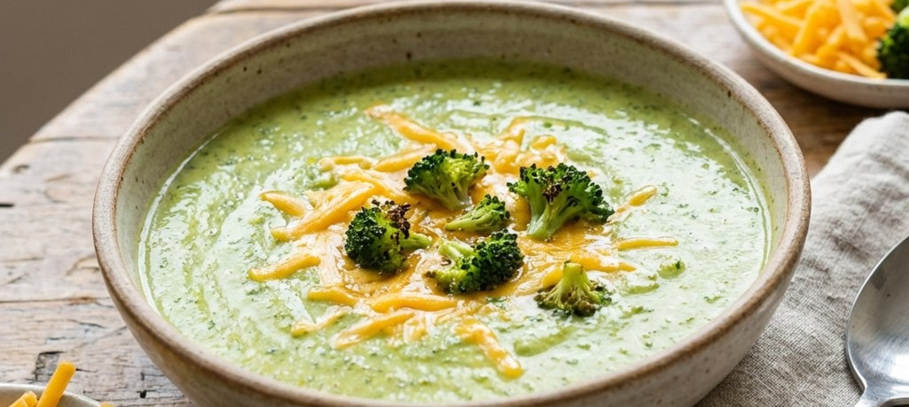 Ein Schuss Zitronensaft am Ende hebt die Aromen des Brokkolis und des Cheddars wunderbar hervor. Servieren Sie die Suppe mit frisch geröstetem Baguette.