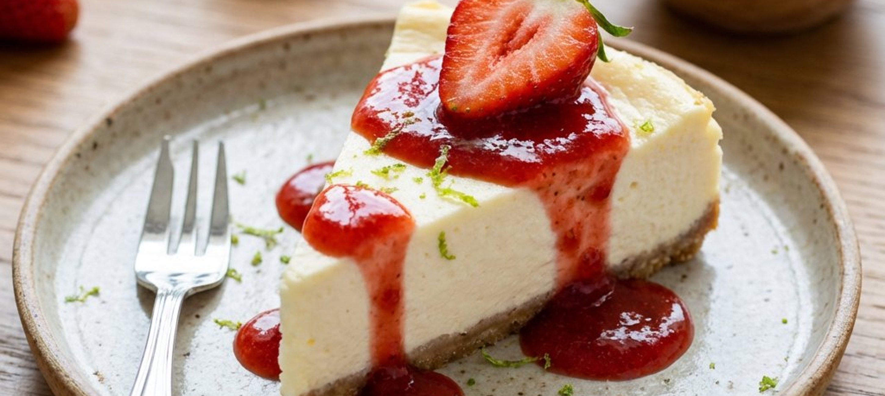 - 2Den fest gewordenen Cheesecake vorsichtig aus der Form lösen, in Stücke schneiden und mit der Erdbeersauce servieren.