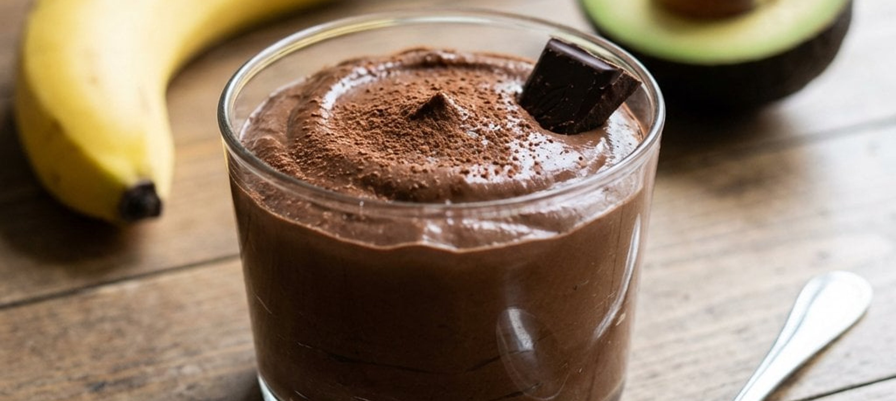 - 2In einem hohen Mixbecher die geschälten Bananen, das Fruchtfleisch der Avocado, Backkakao, Honig, Kokosmilch und die geschmolzene Schokolade geben. Mit einem Stabmixer alles zu einer vollkommen glatten Creme pürieren.