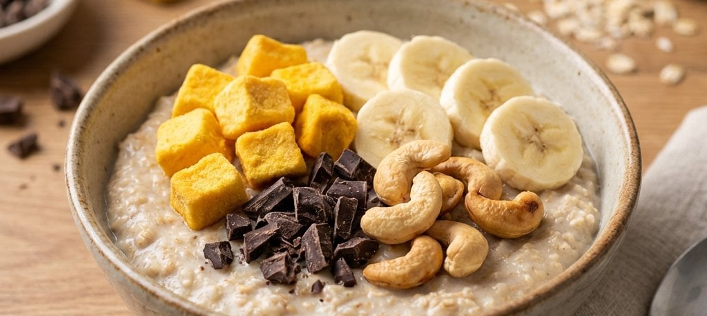 - 30 g gefriergetrocknete Früchte (z.B. Mango und Banane)